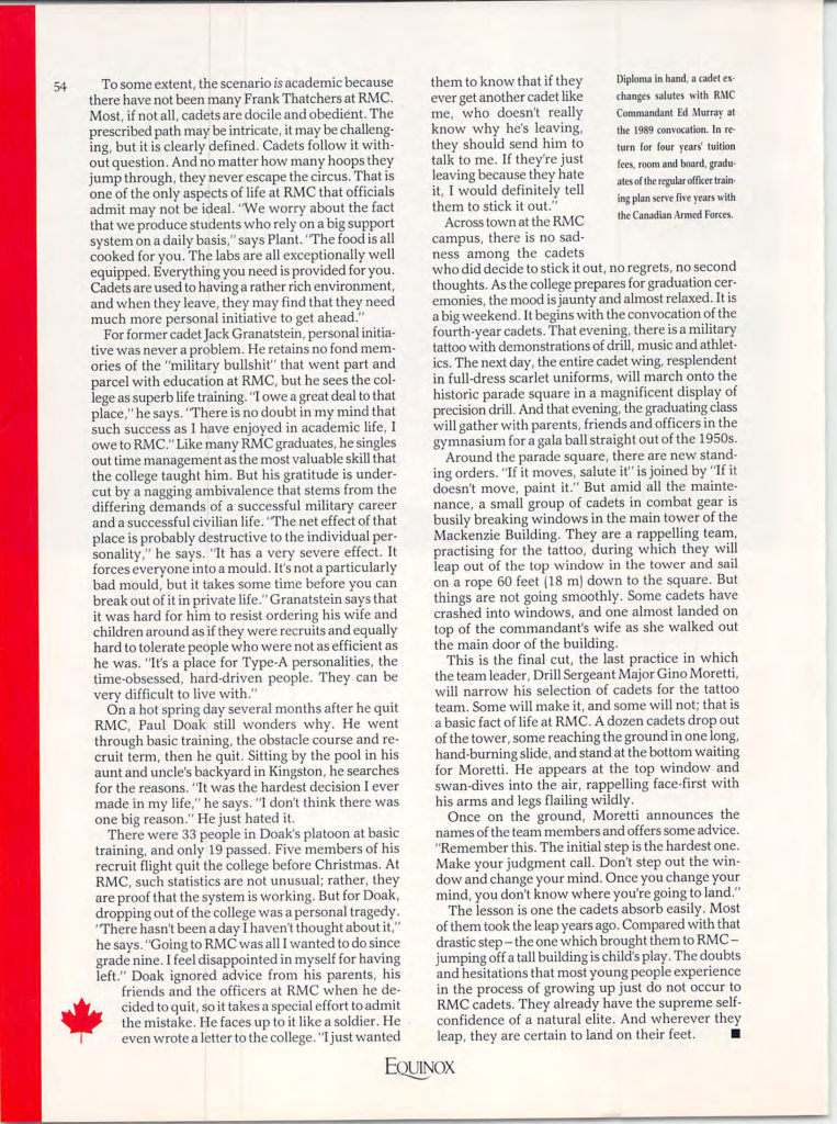 Presented here as part of our ongoing archival preservation project, this article stands as an important lens into the RMC experience of the late 1980s.